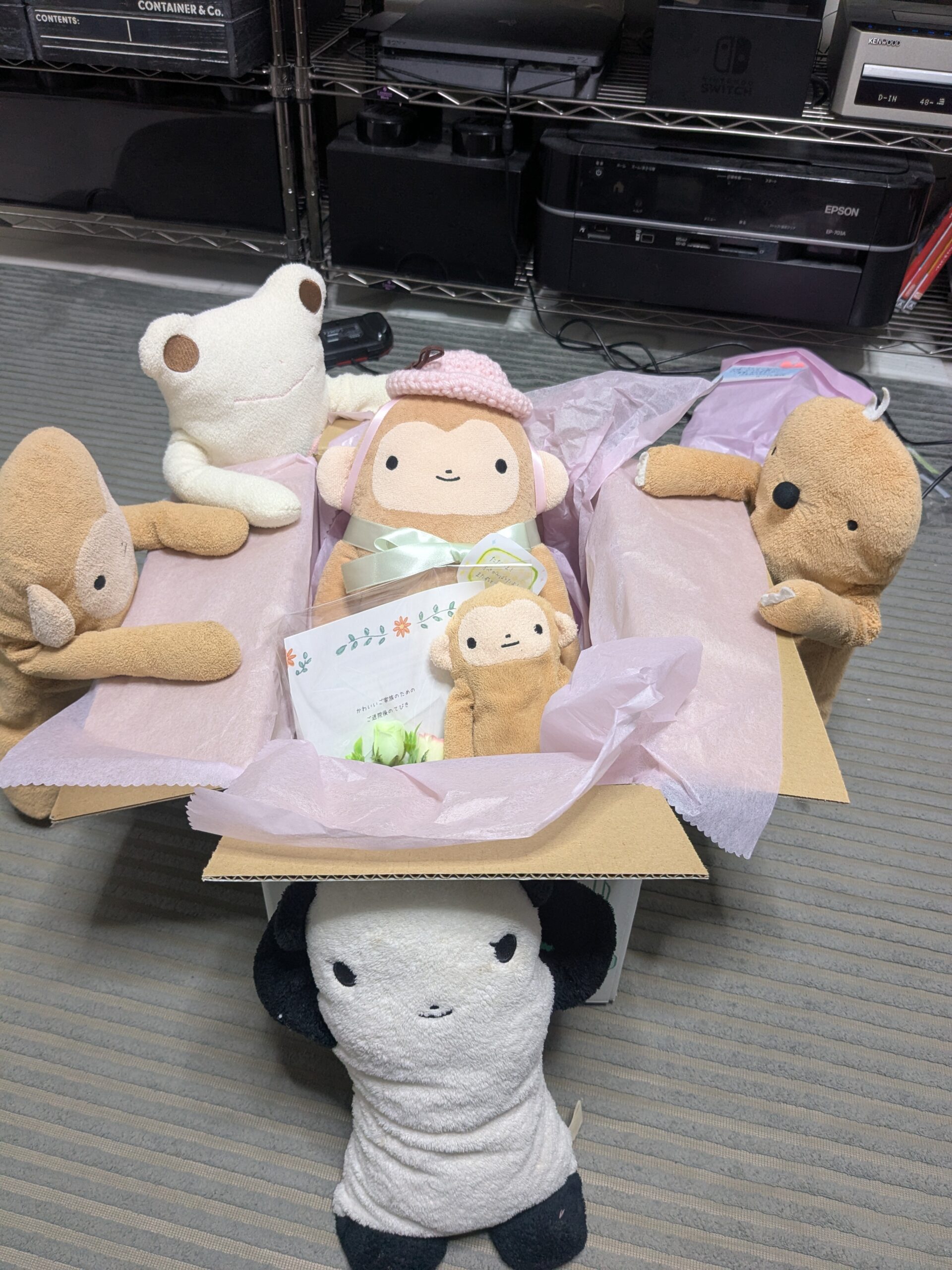 待ちに待ったもんちゃんの到着が嬉しくすぐに抱っこをすると、思っていた以上にふわふわっとした柔らかい手
