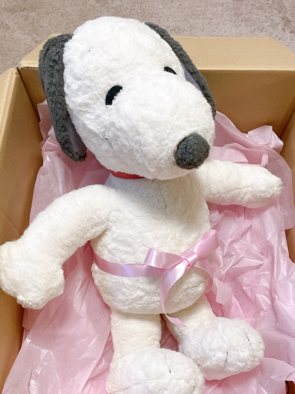 すっかりベテラン世代のスヌですが、希望どおり昔から変わらないお耳やおとぼけ顔はそのまま。ボディは新しいふわふわの気持ちいい手触りになってピチピチ若返ってくれました。新しいしっぽも、変わらずピョコピョコサイズでかわいいです!