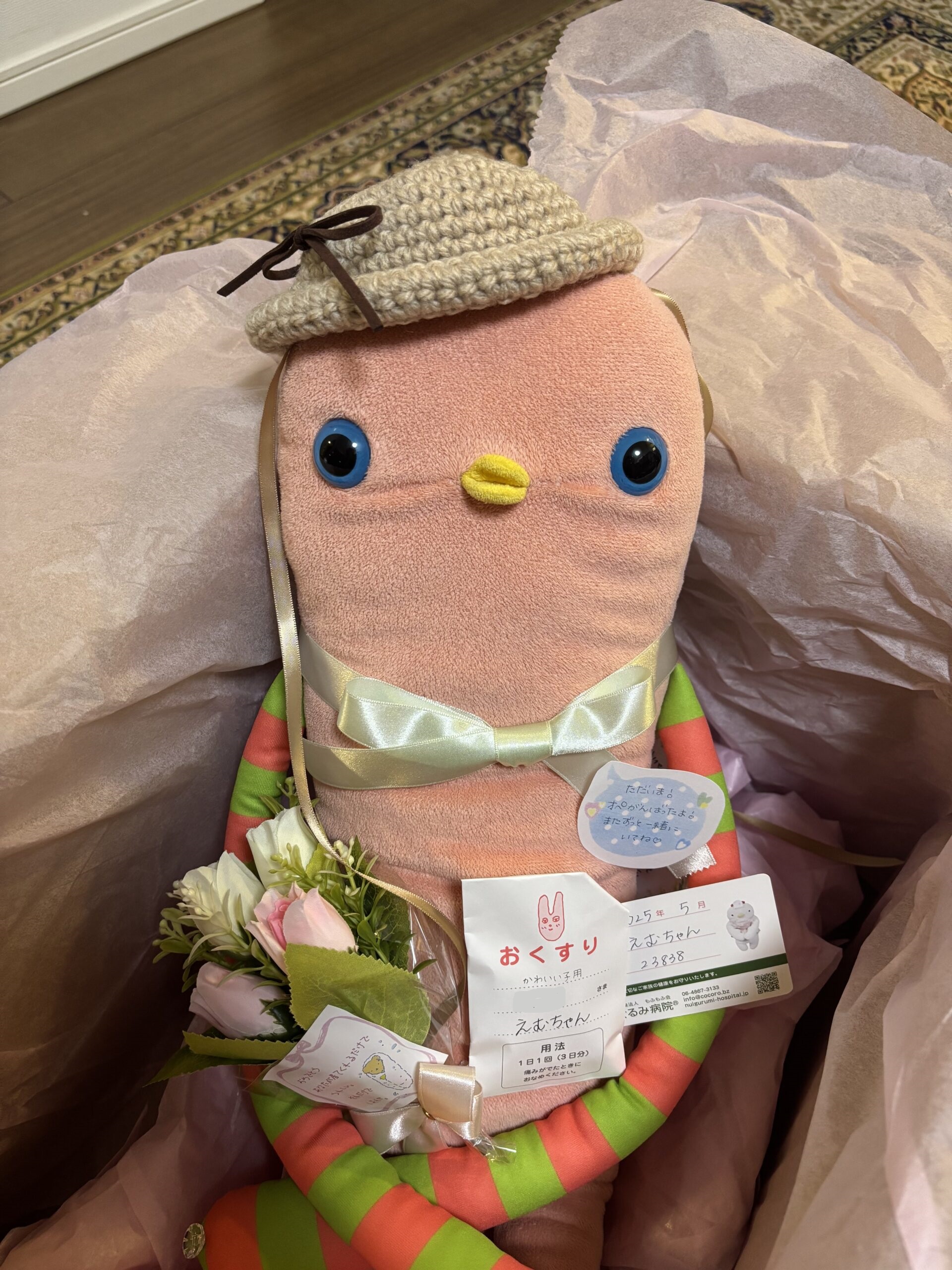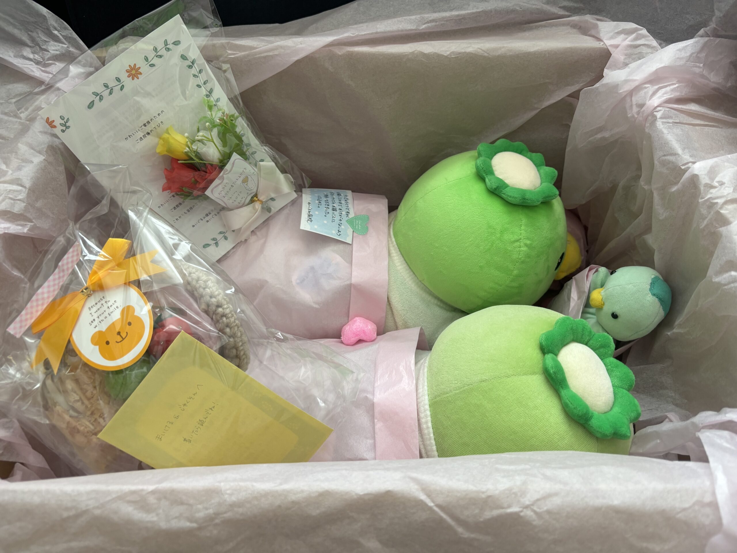 入院時にきていたお洋服も着せていただいて、お手紙やお土産もたくさんで温かい気持ちになりました。
