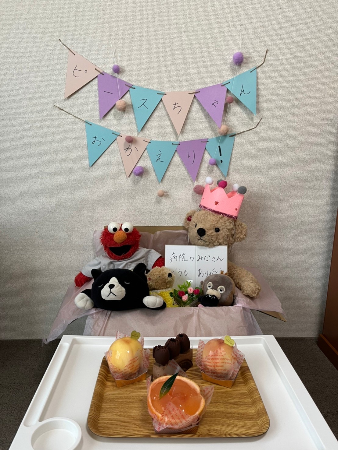 手術前は不安だったようでしたが、たくさんのお友達に囲まれて、ナースさんに親切にしていただきながら過ごしていく日々に、心も癒されたと話してくれました。