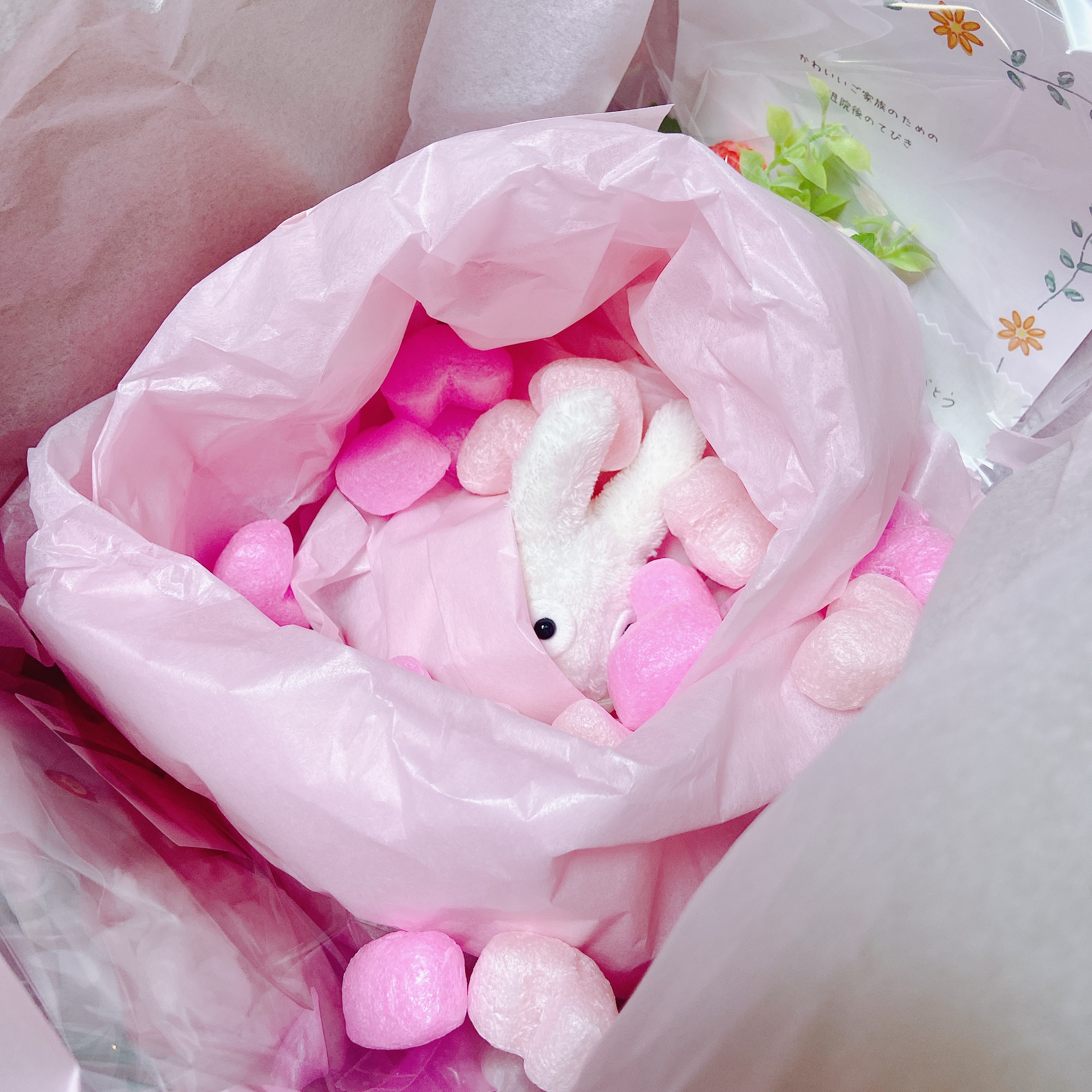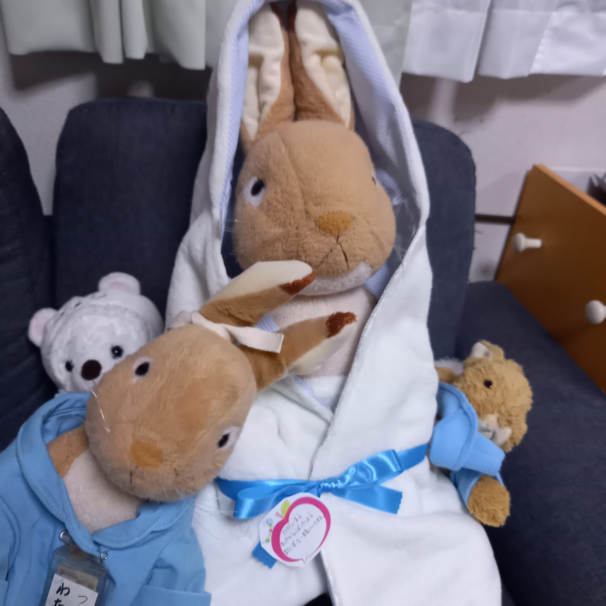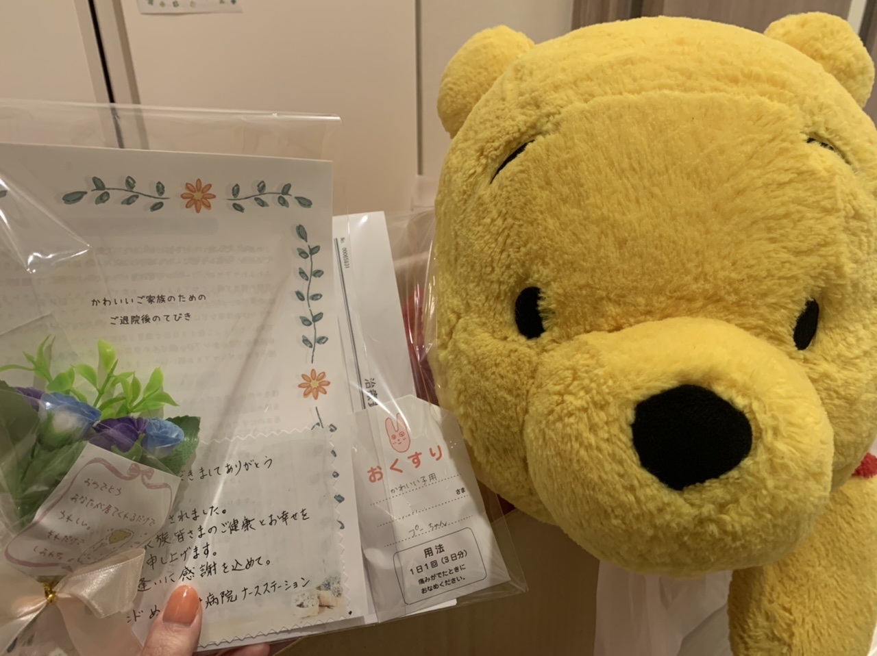 お布団から出すとお腹に一言書かれたリボンが巻かれていて、その内容を見て思わず泣いてしまいました。