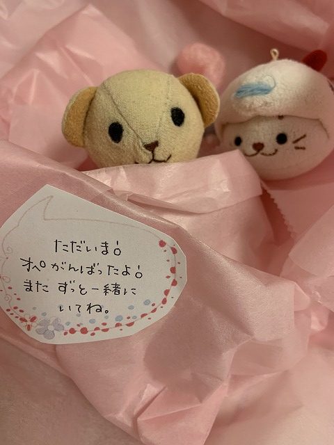 ぬいぐるみ病院さんの存在は、私たちにとって本当に感謝しかありません。いつも寄り添っていただいて、私たちの家族を愛してくださって、本当に尊いお仕事をありがとうございます。