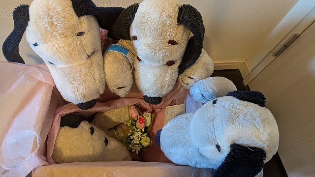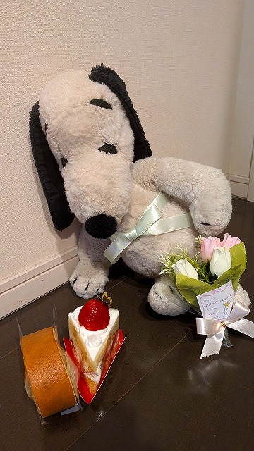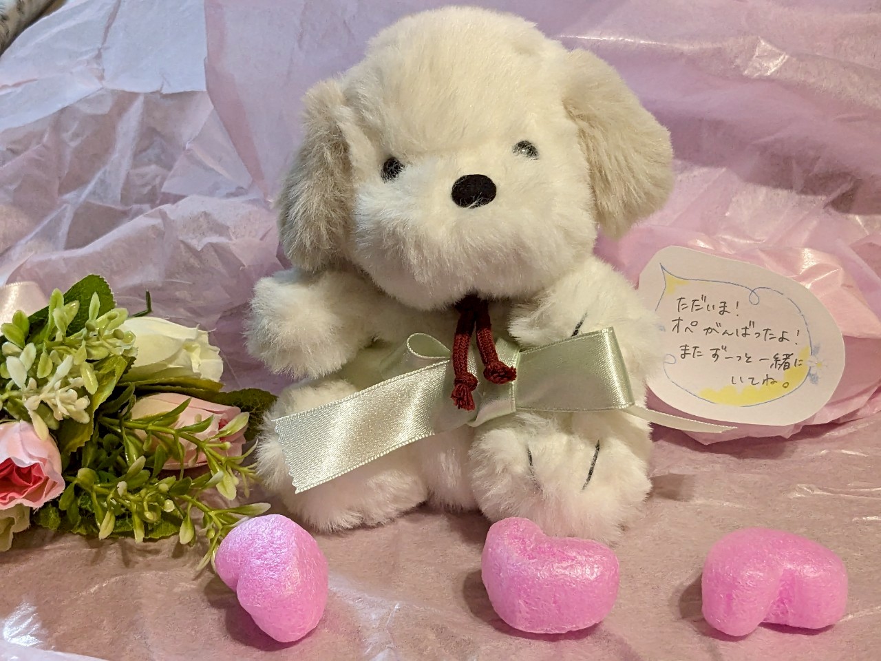 めぇちゃんもとっても気に入ったらしく、しばらくリボンつけたままで花束もポシェットに入れておきたいとのことでした。