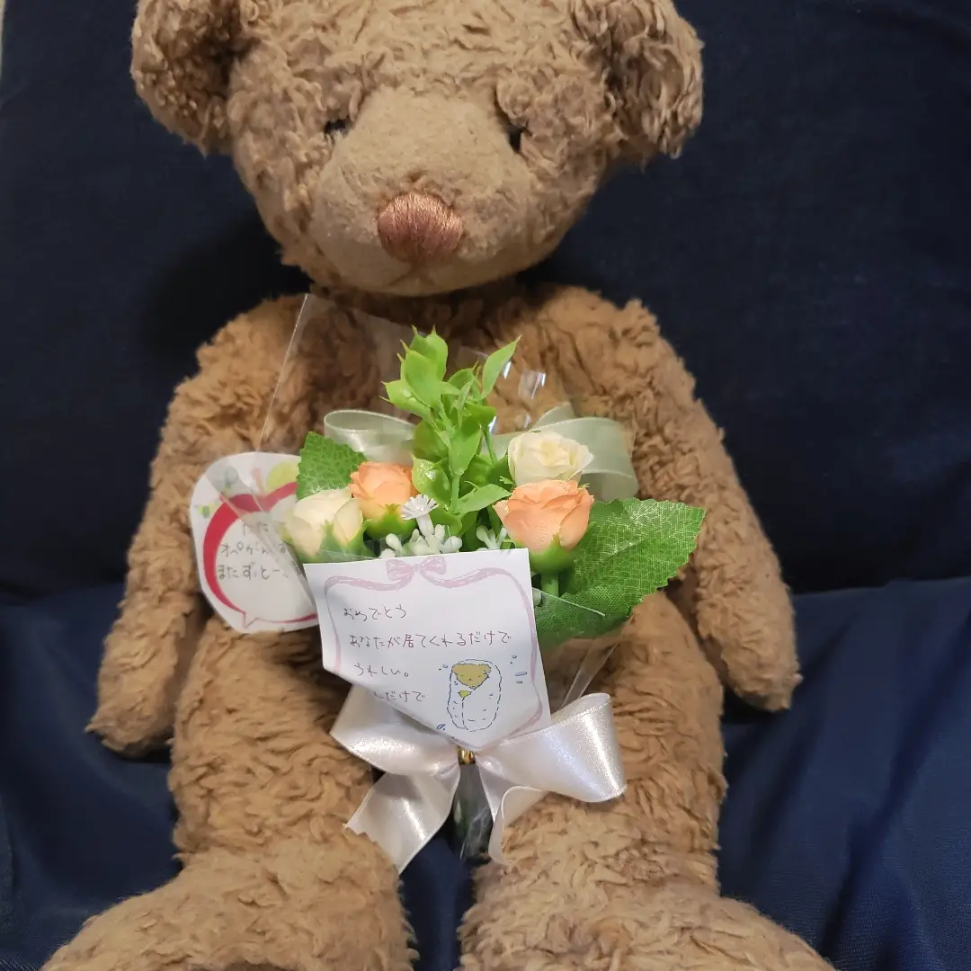 綺麗なリボンをつけてくださったりメッセージや退院祝いのお花にお薬や退院後の手引きまでつけていただいて、