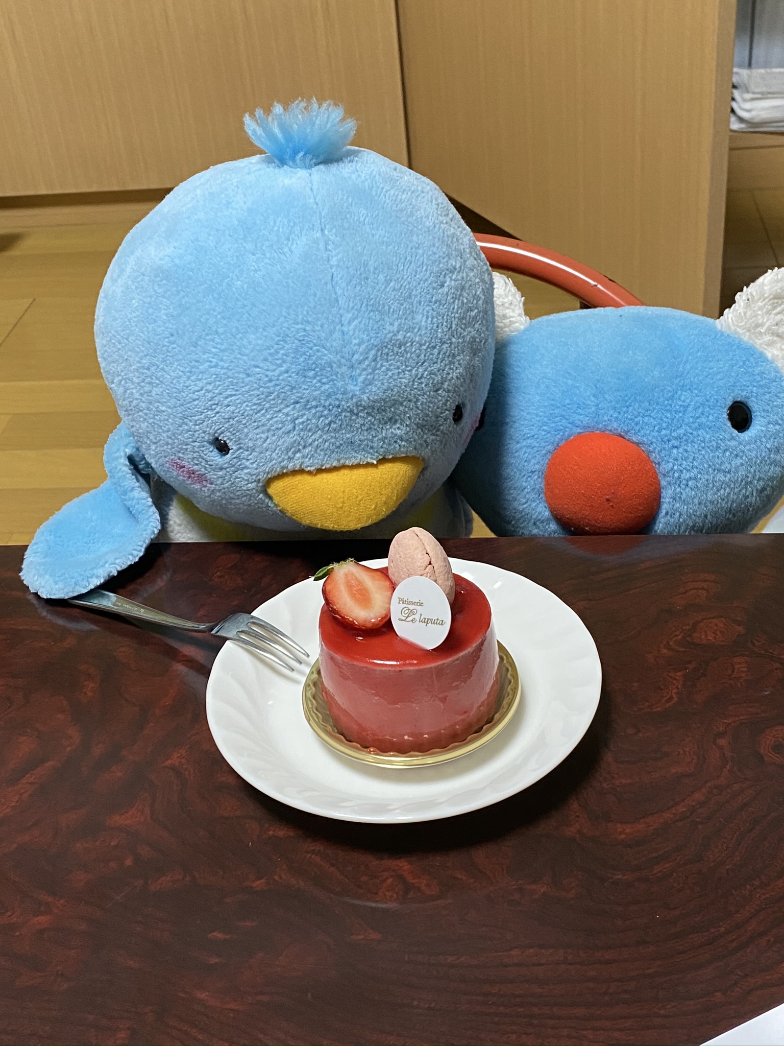 写真は帰ってきた日にお祝いで大好物のケーキを