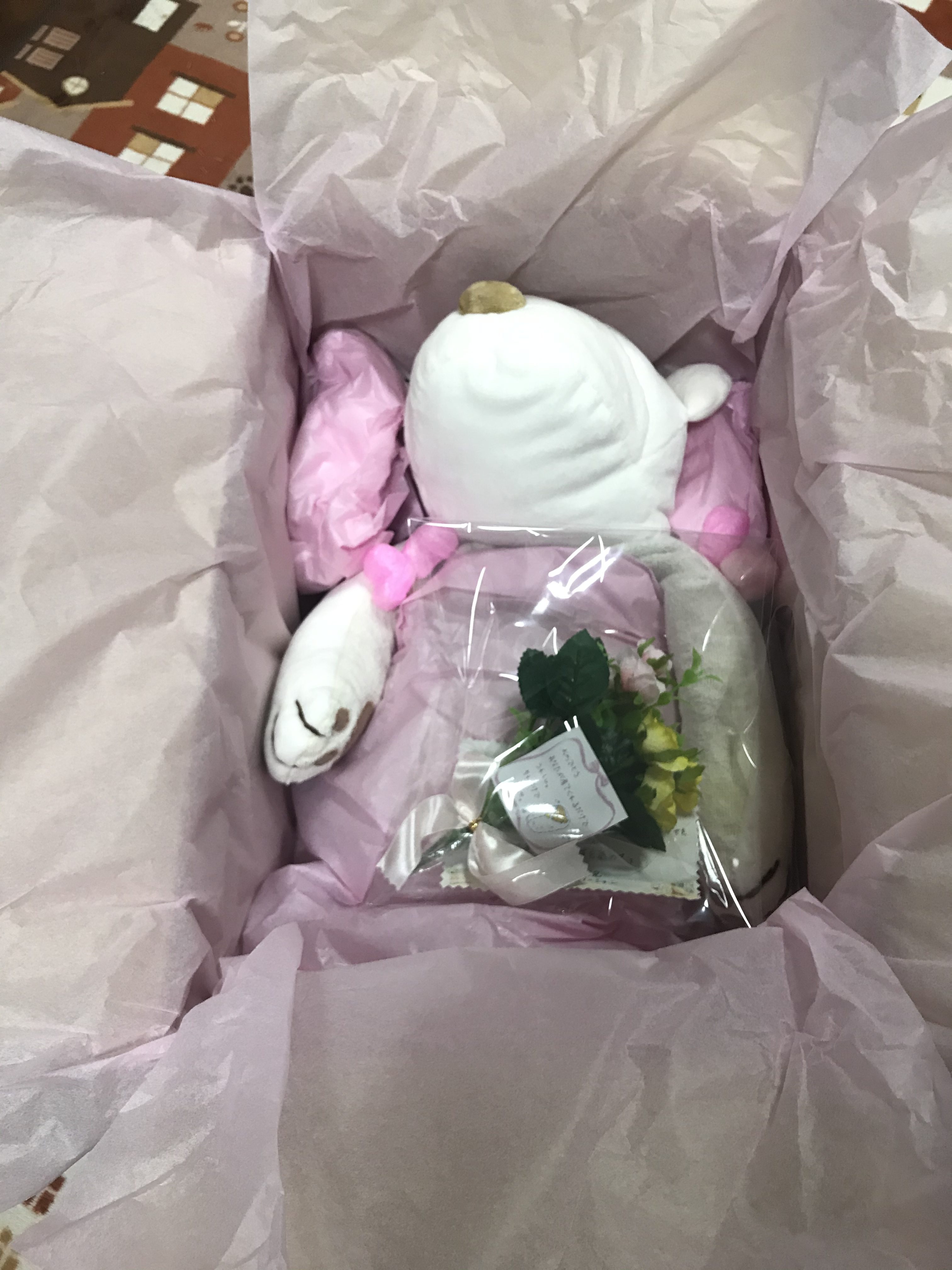 そして、入院中には、こまめにメールを下さり、写真も添付してくださったので、安心できました。いつも一緒に寝ていたぬいぐるみだったので、1ヶ