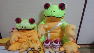 退院パーティ、食い倒れ帽子が似合ってますね、チャぽはアカメアマガエルから殿様ガエルになったみたいです。そして、ポミのナース研修、親バカ全開でカワイイを連発して見てました。