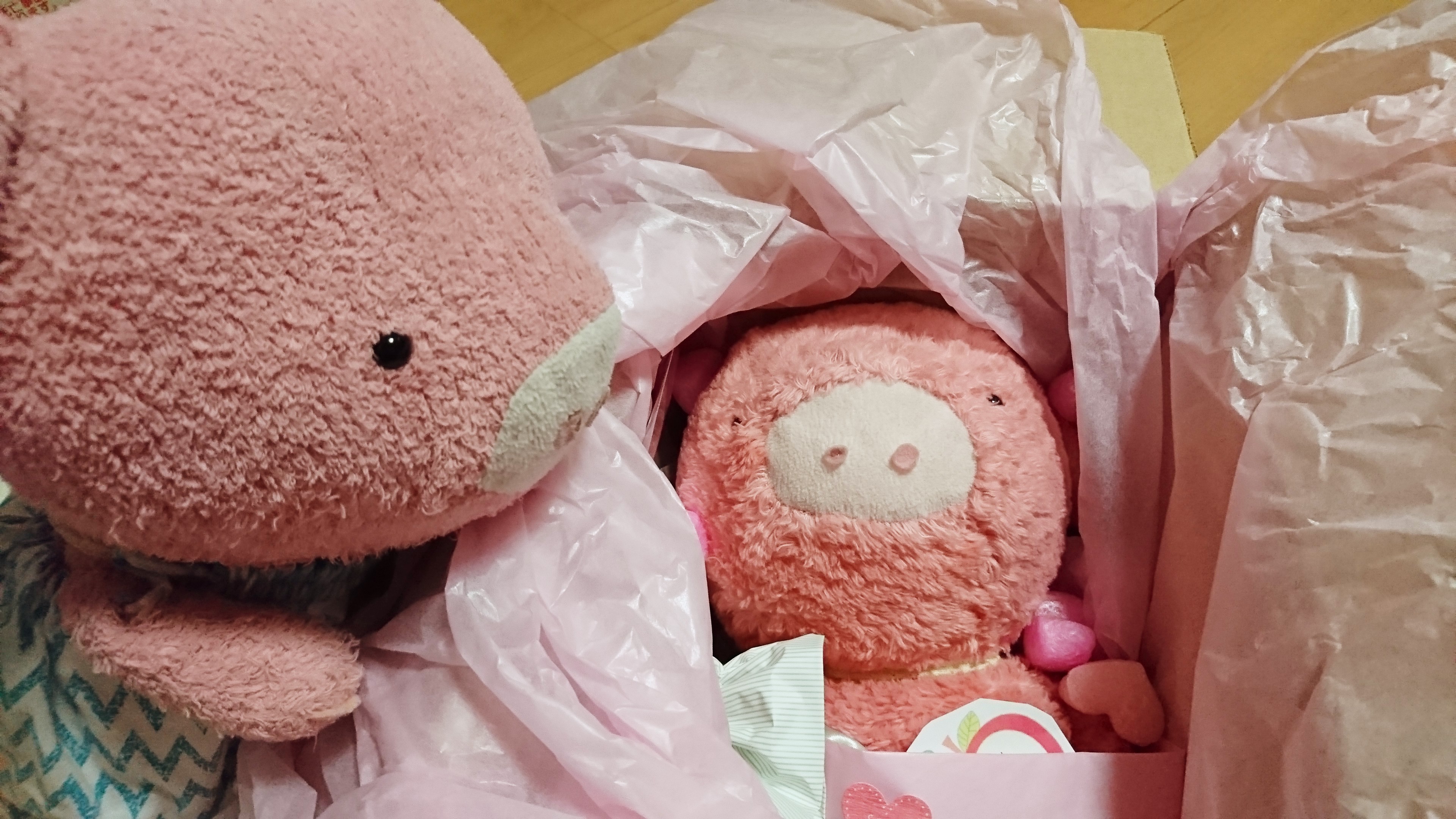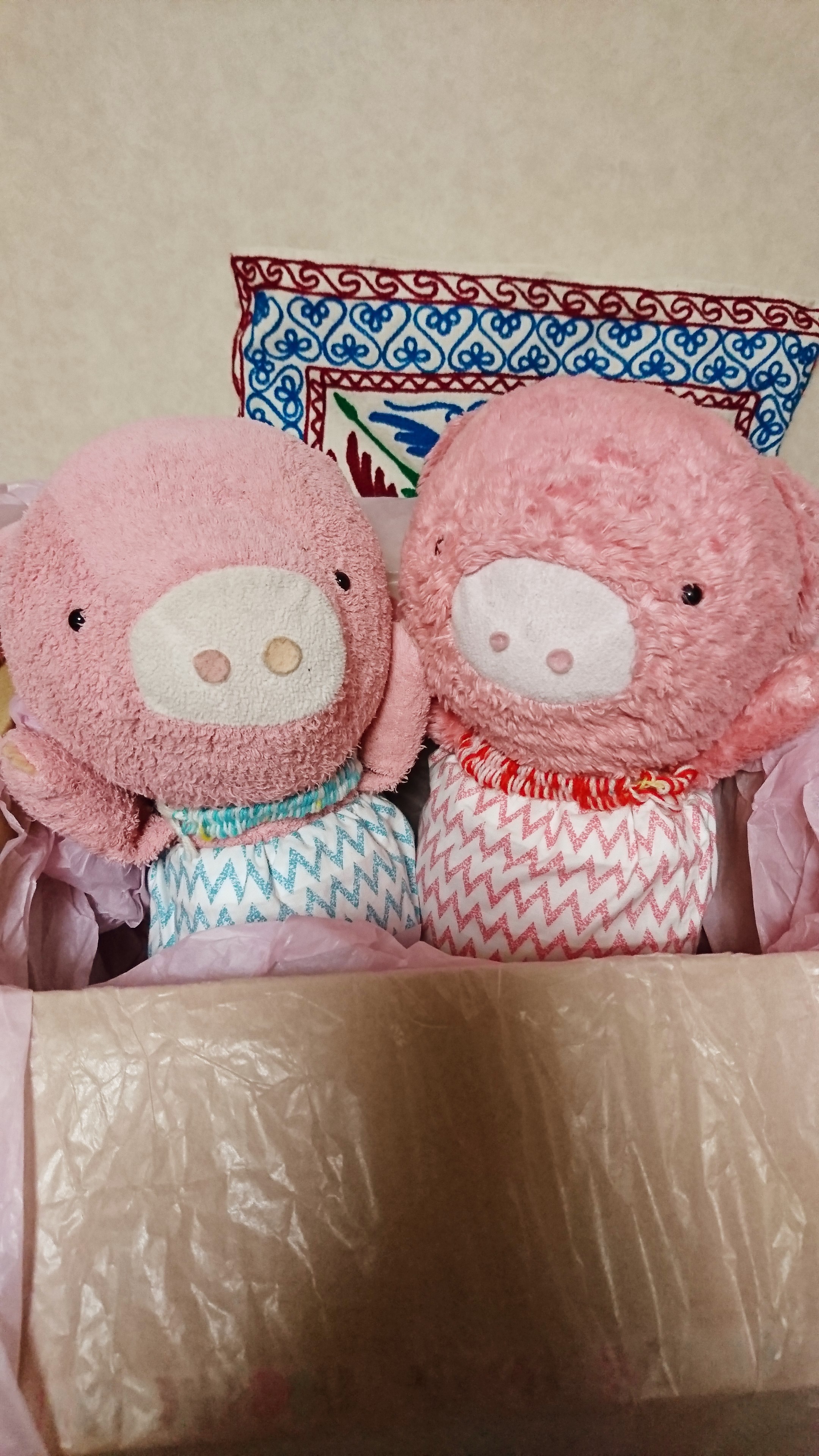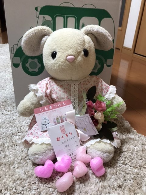 早く箱を開けてあげれば良いのに、お箱バスを受け取ってしばらく箱のまま抱きしめていました。