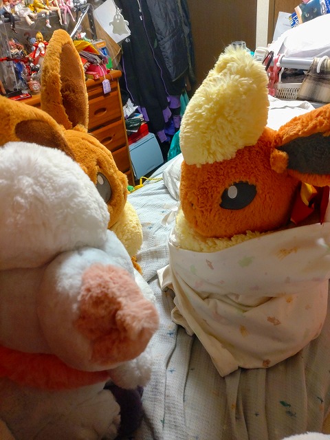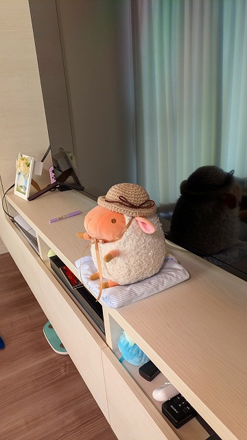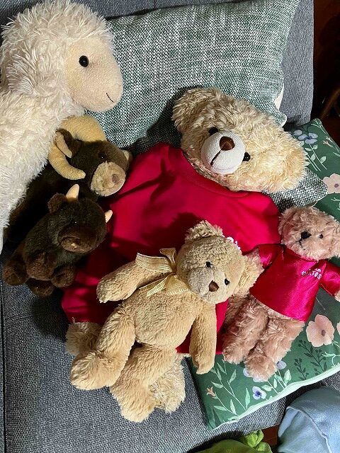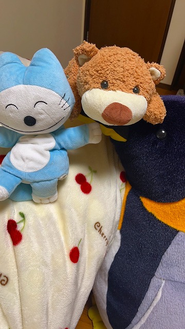 今は昼間はリビングで家族を見守り、夜はベッドで一緒に寝ています。