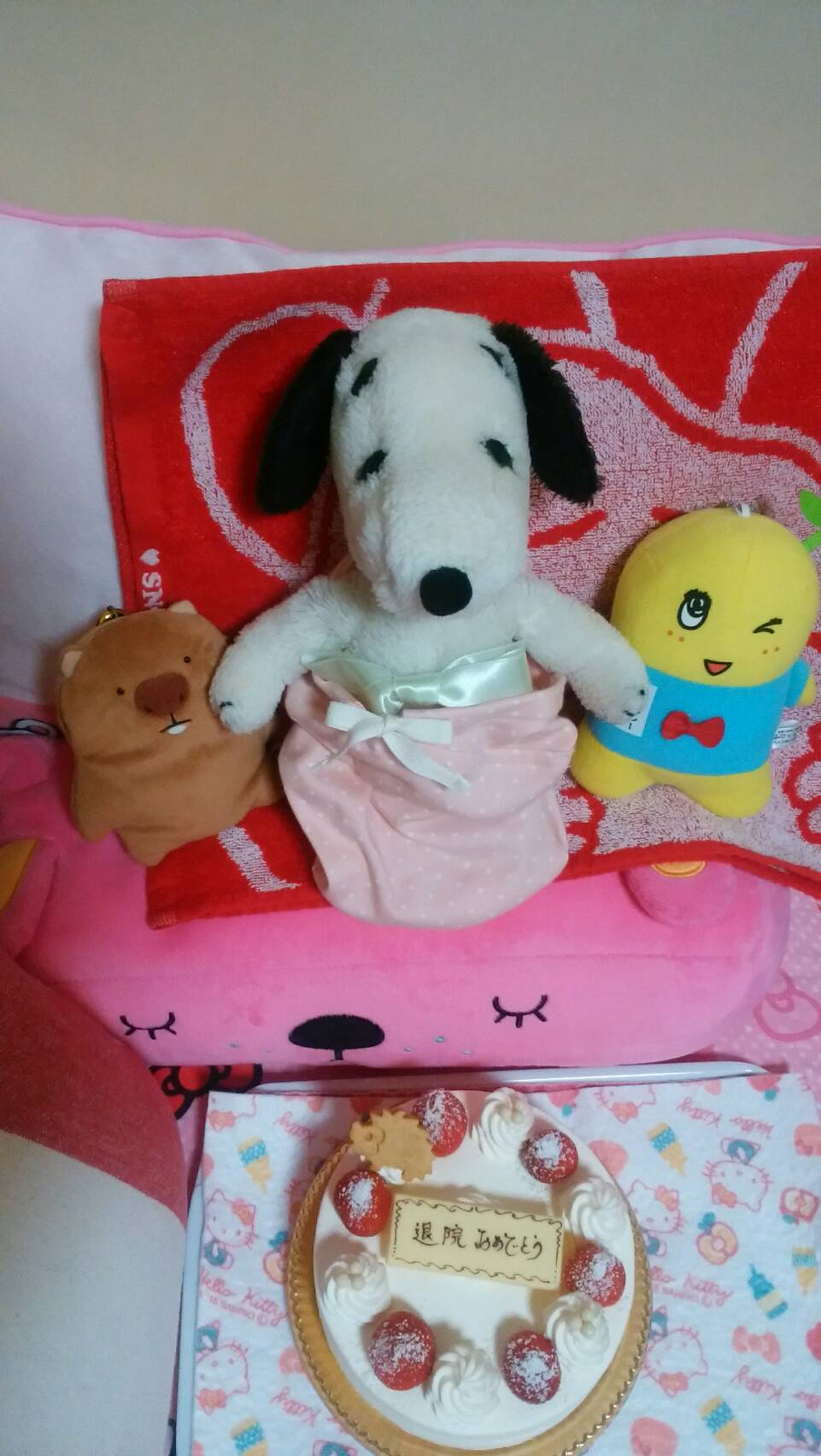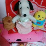 自宅に戻ってきたぷーちゃんと付き添いのカビちゃんは、家で待っていた仲間たちに病院での生活について、楽しそう話していました。