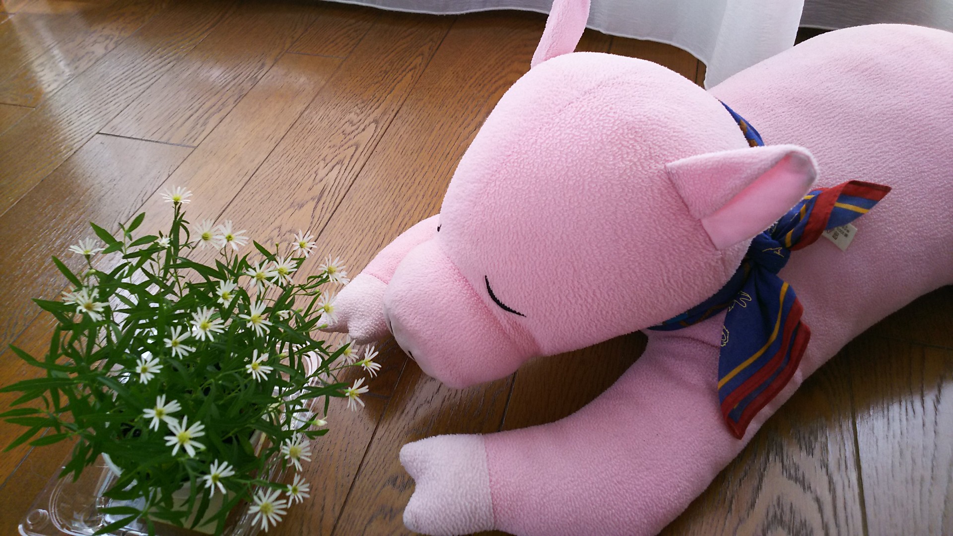 ふんわりふっくらしたリボン付きのトンキチと再会した