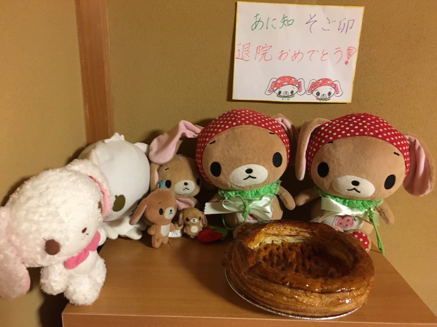 いのの先生、婦長のこけこっこさんをはじめナースのみなさん、添い寝をしてくれたフモフモさん本当にありがとうございました。