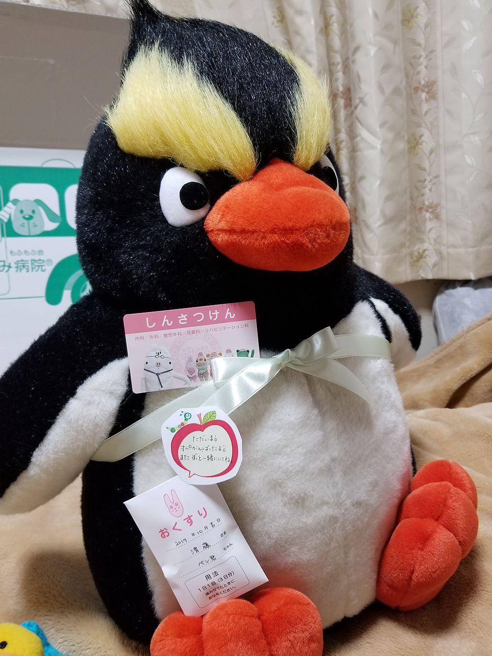 先生、婦長様、ありがとうございました!元気にな りました!お世話になりました。楽しい入院生活でした♪何かあったら、また宜しくお願いします!ペン君より