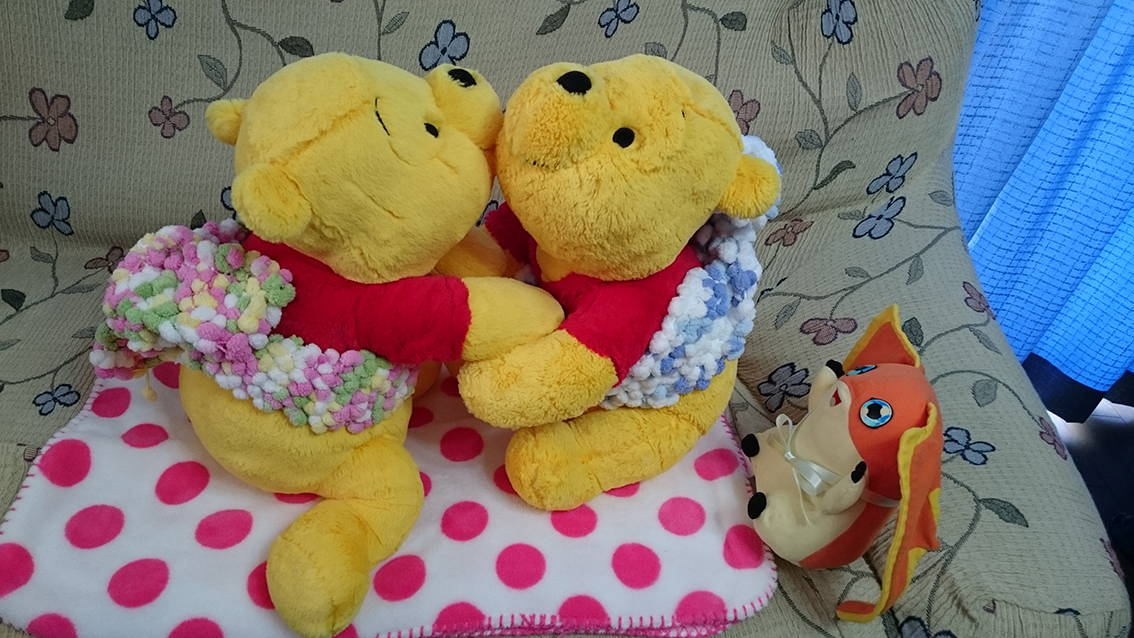 弱々しい息子(ぷく)でしたので心配になり入院させましたが帰宅してビックリ(笑)体がマッチョになり顔つきまで凛々しくなり帰ってまいりました。初めの頃は抱き心地の違いに戸惑いましたが今はしっくり来て居ます。