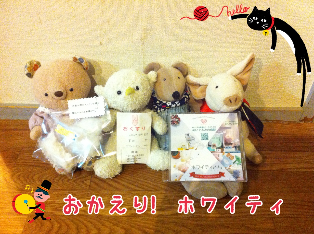 手もだらりとしていたし、顔も首で綿が切れていたのでだらだらでした。