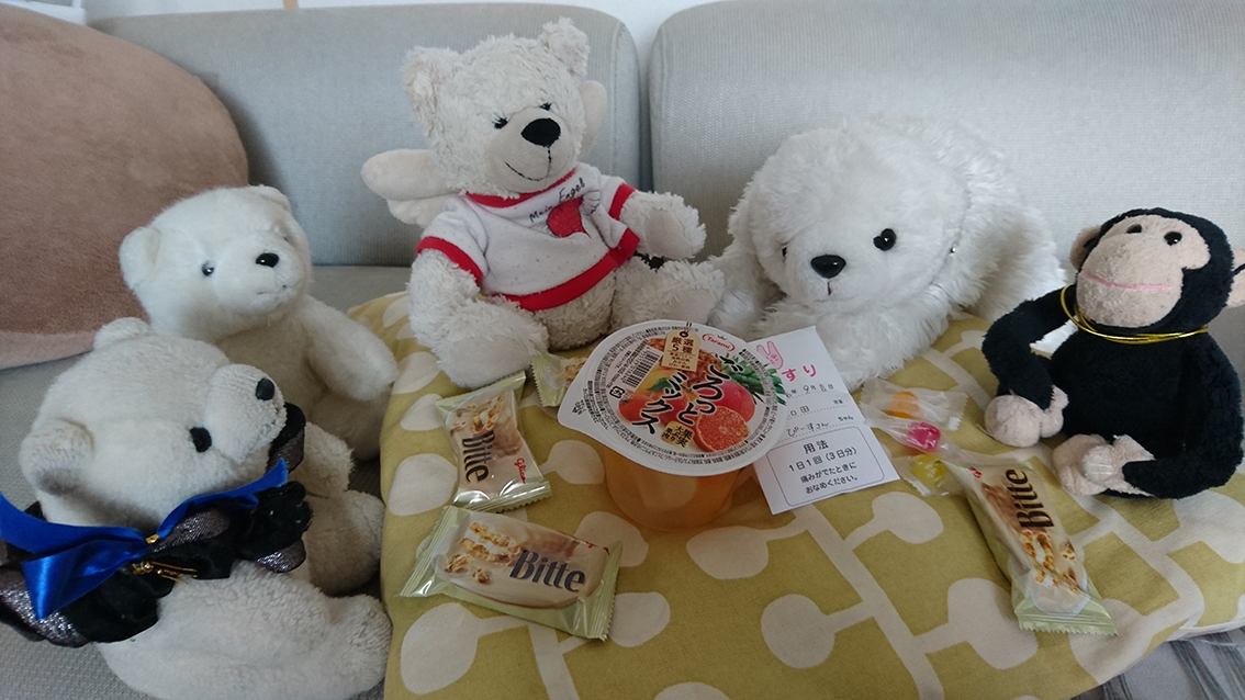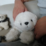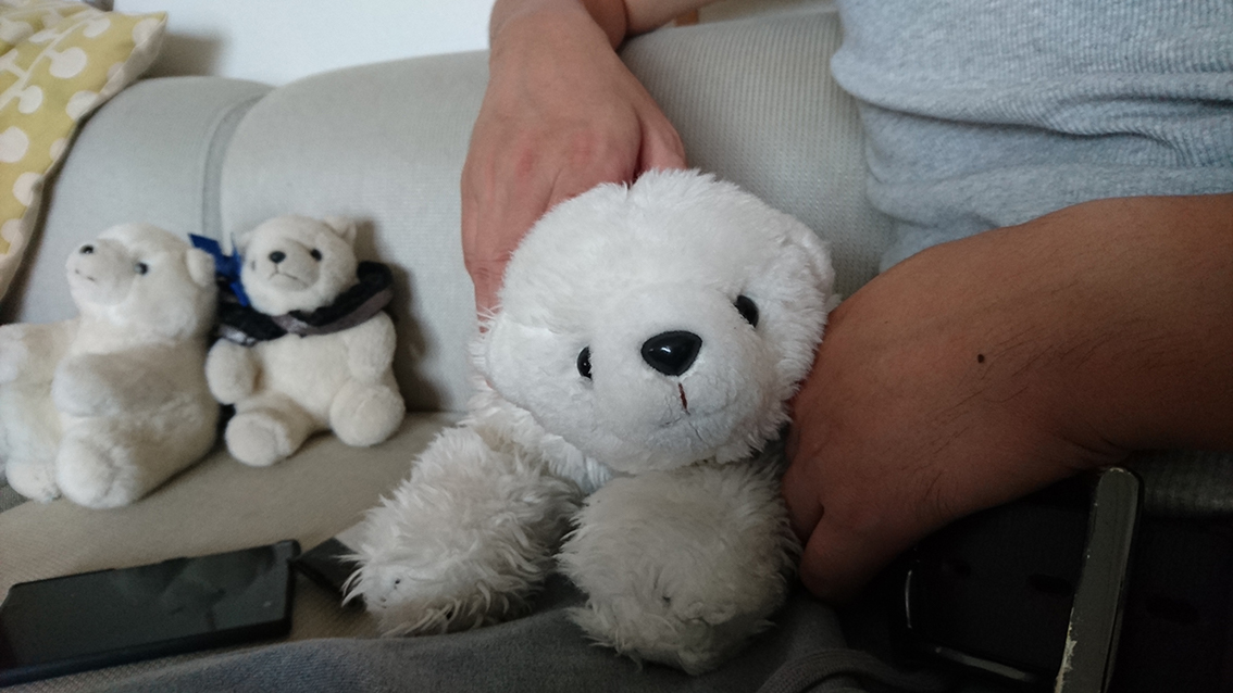 ちょっとお座りしにくくなったようですが「でも、抱っこしてもらうときに寄り添いやすくなったよ」と本人(本くま?)が言っているので大満足です。