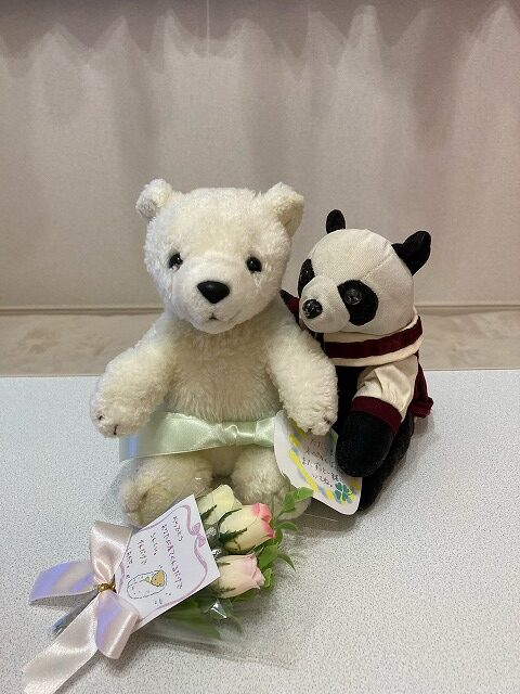開けるとダッフィーだけでなく、退院祝いの花束やお薬、ラッピングがされており、とても驚きました。きっと、たくさん可愛がっていただいたのだなと目が熱くなりました。