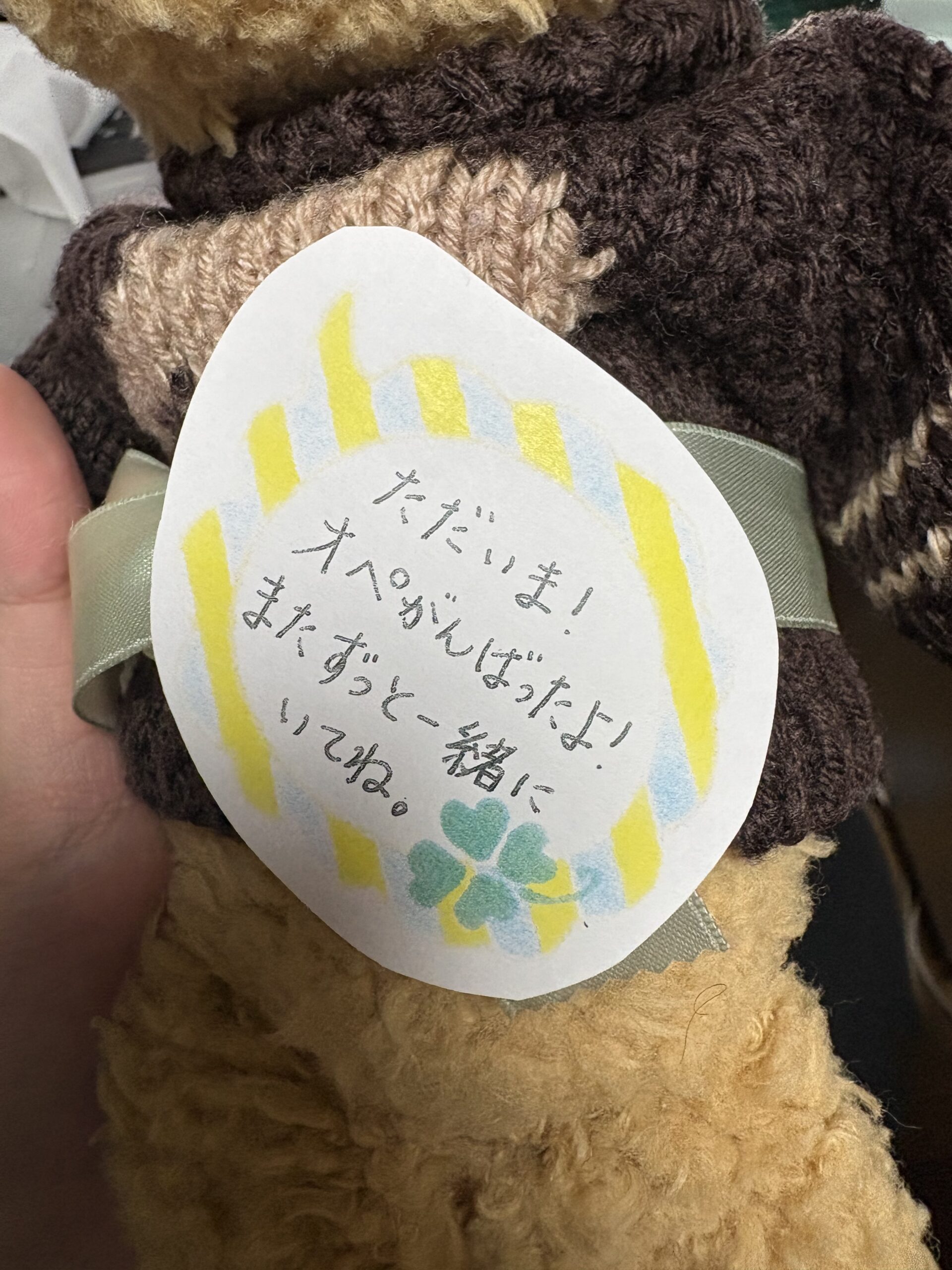 ぬいぐるみ病院の皆さんには大変お世話になり、ありがとうございました。