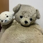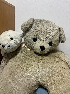 (ナソーちゃんの相棒のイエティちゃんはナソーの帰宅に喜んでいました)