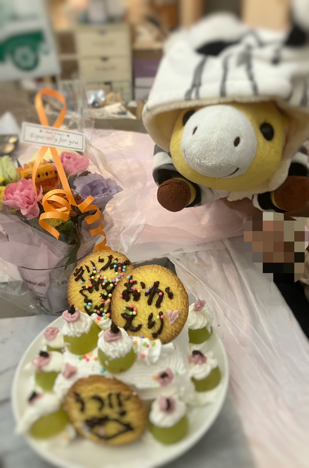 退院後のみみっちとさまざまなところを観光し、お土産にロールケーキを買って一緒に食べましたので写真を添付いたします。