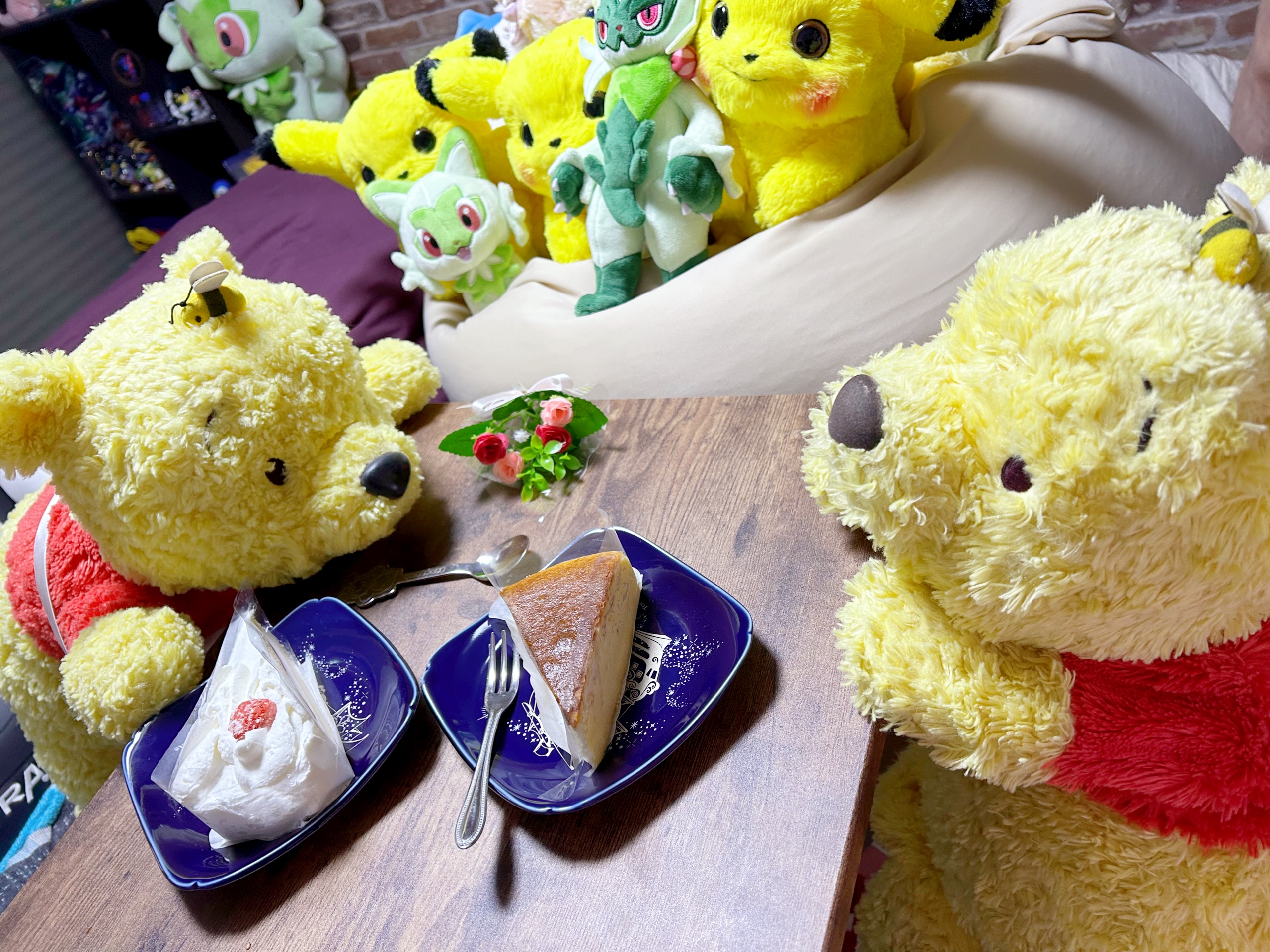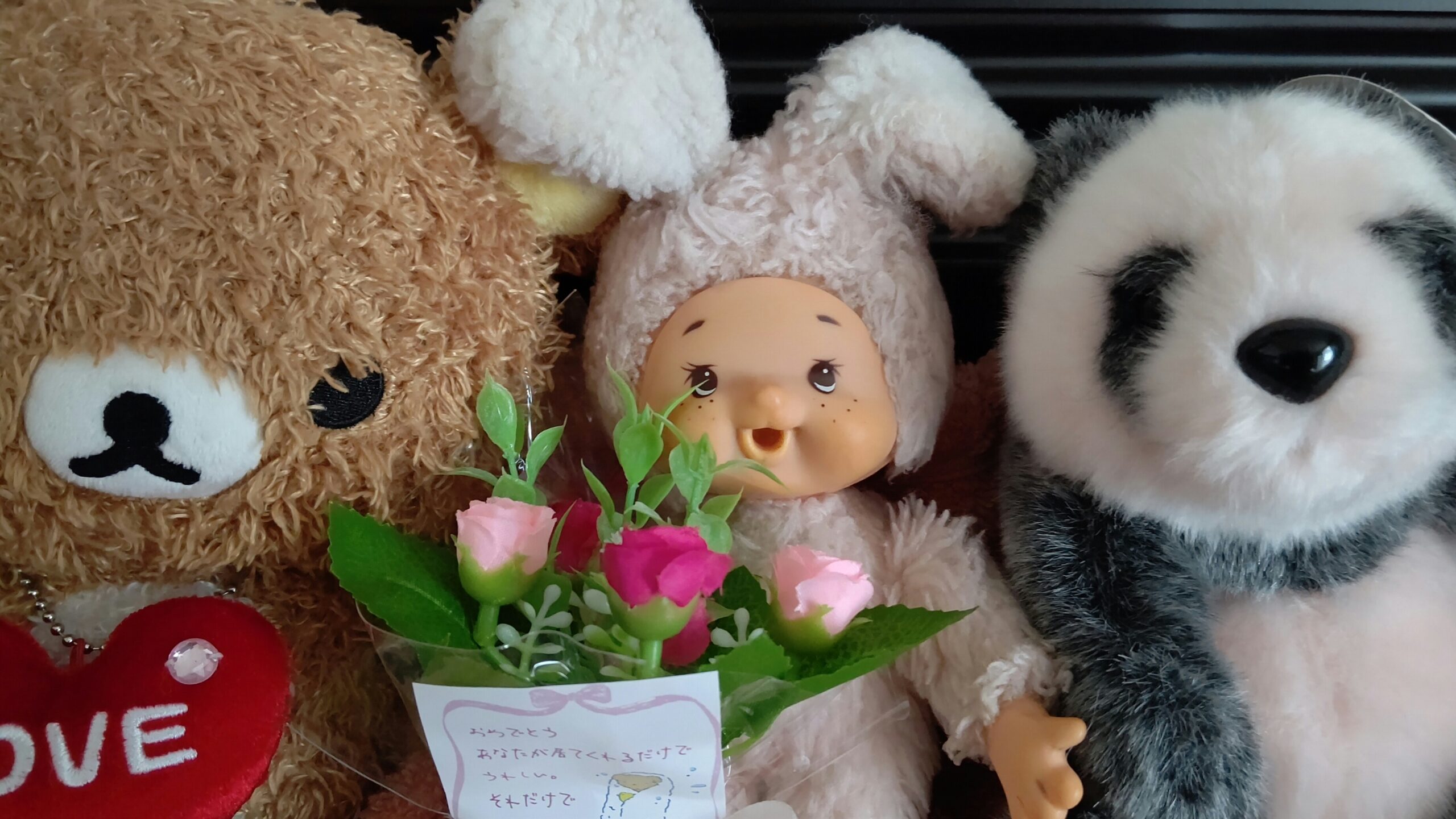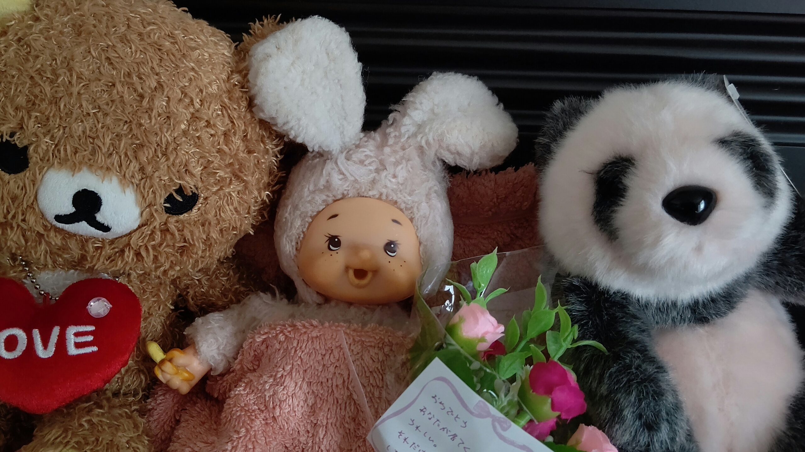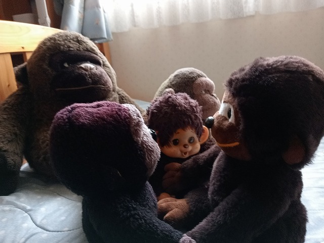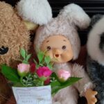 入院前のきーちゃんはかなり緊張していて、こちらも心配していましたが、帰ってきたら笑顔で病院での話をたくさんしてくれました。ふわふわで綺麗になったきーちゃんを見て、他のぬいぐるみたちも羨ましがっていました。