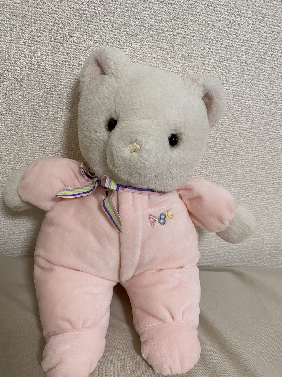 温存して欲しいとお伝えした刺繍部分、母が縫ってくれた足裏の怪我跡、眼の傷、そして追加のお腹の裏。再生手術で変わったピンクの服部分と綺麗に共存していて、とても嬉しかったです。