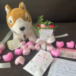 箱を開けるとピンクの可愛らしい物に包まれて、また可愛らしいピンクのスポンジもちりばめられて、ゆったり安心して戻って来たようです。