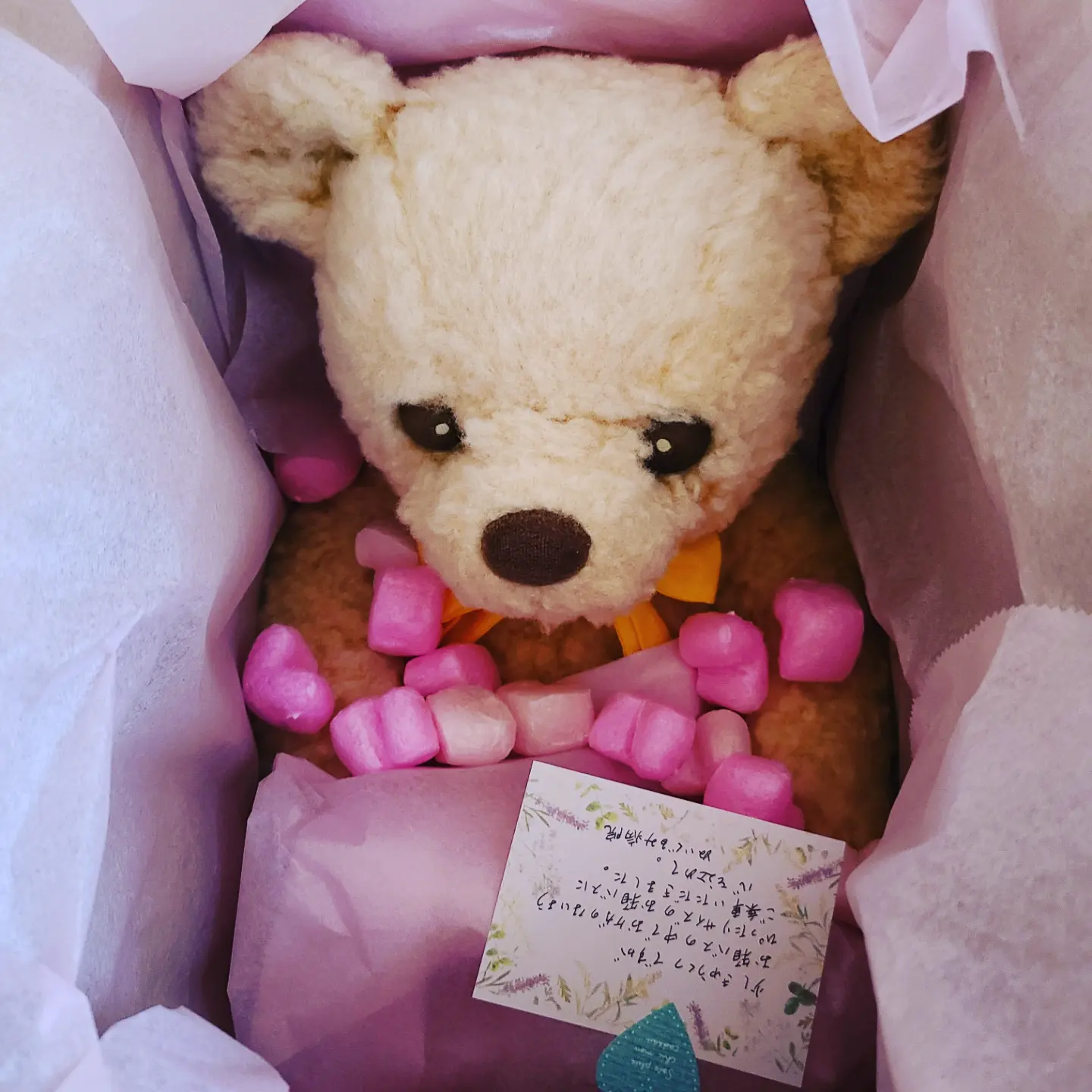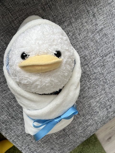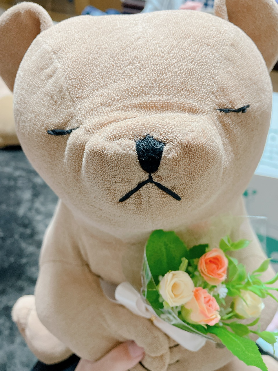 新しい洋服を無地と決めていたのですが、エステ後に「ピンクの生地に何か水色の模様が入っていませんか?無地ではないものも探しましょうか?」と細かい所まで気付いて下さりとても感動しました。洋服とハゲていた手の再生が終わりいよいよ帰宅となり、ワクワクしながら子供達と待っていたところ、可愛いバスの中に可愛い状態のぷーちゃんと付き添いのちゃうが!!私も子供も余りの嬉しさに泣いてしまいました。もちもちふわふわのぷーちゃんを抱っこするととても癒されます。
