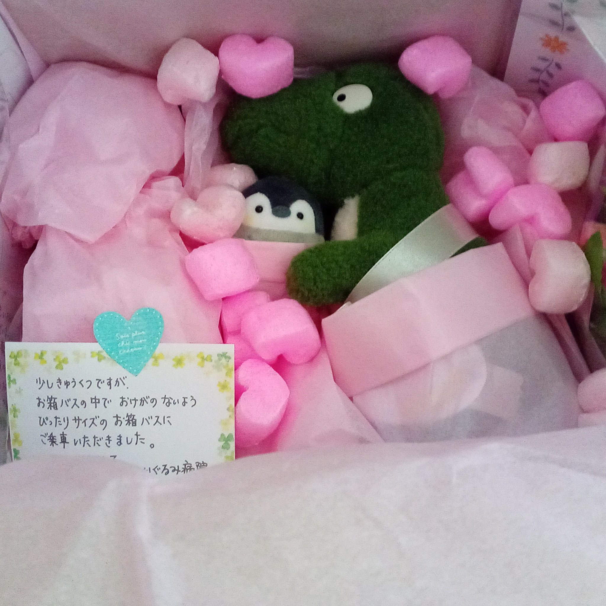 入院日に無事に到着するかが不安だったのですが、到着の連絡もして下さって安心できましたし入院中もピギーとぷーとんの様子を楽しく伝えて下さったりお写真を送って下さったりで、寂しい気持ちはほとんど感じずに退院を待つことができました(*^^*)