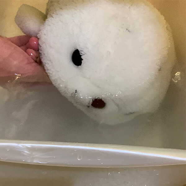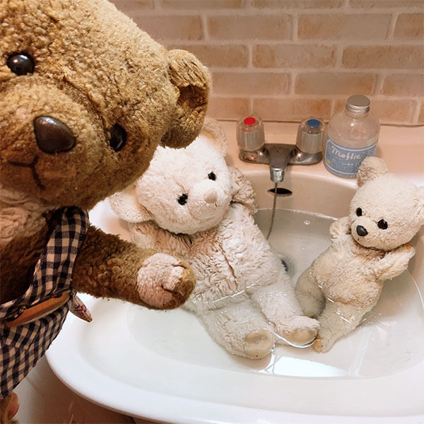 顔を浸けたままにするのはかわいそうで、あまり浸けられなかったのですが、くまさんも気持ちよさそうにしていました。
