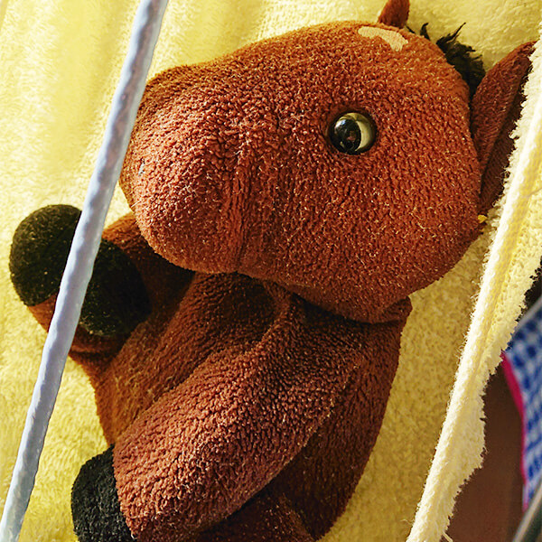 ドキドキしながらタオルで拭いてもらい、ハンモックの上でお昼寝しながら乾くのを待ってました。