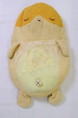 おなか部分を皮膚移植し、文字やハートの部分はくりだししました。